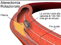 L’aterectomia rotazionale (Rotablator) è una procedura con la quale si cerca di disostruire l’arteria coronaria ristretta mediante il passaggio di una piccolissima fresa rotante a forma di palla da rugby (di oliva) montata sulla punta di un catetere che ruota ad alta velocità. Il Rotablator è in grado di asportare la placca aterosclerotica frantumandola in microscopici frammenti che verranno riassorbiti dai vasi capillari a valle della lesione.